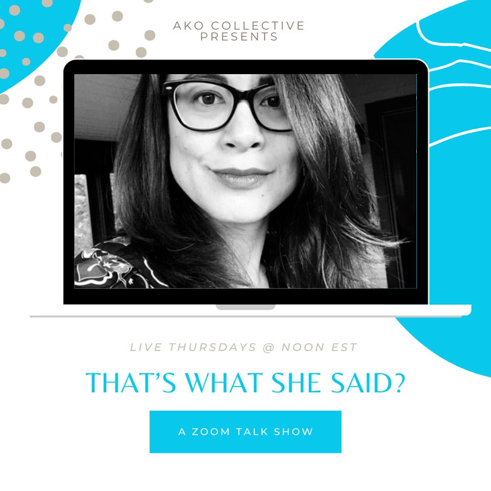 Next week Thursday 11/5/20 at Noon EST to take our minds off the election, I’m launching “That’s What She Said?” a Zoom talk show featuring me and my smart friends (that’s you).